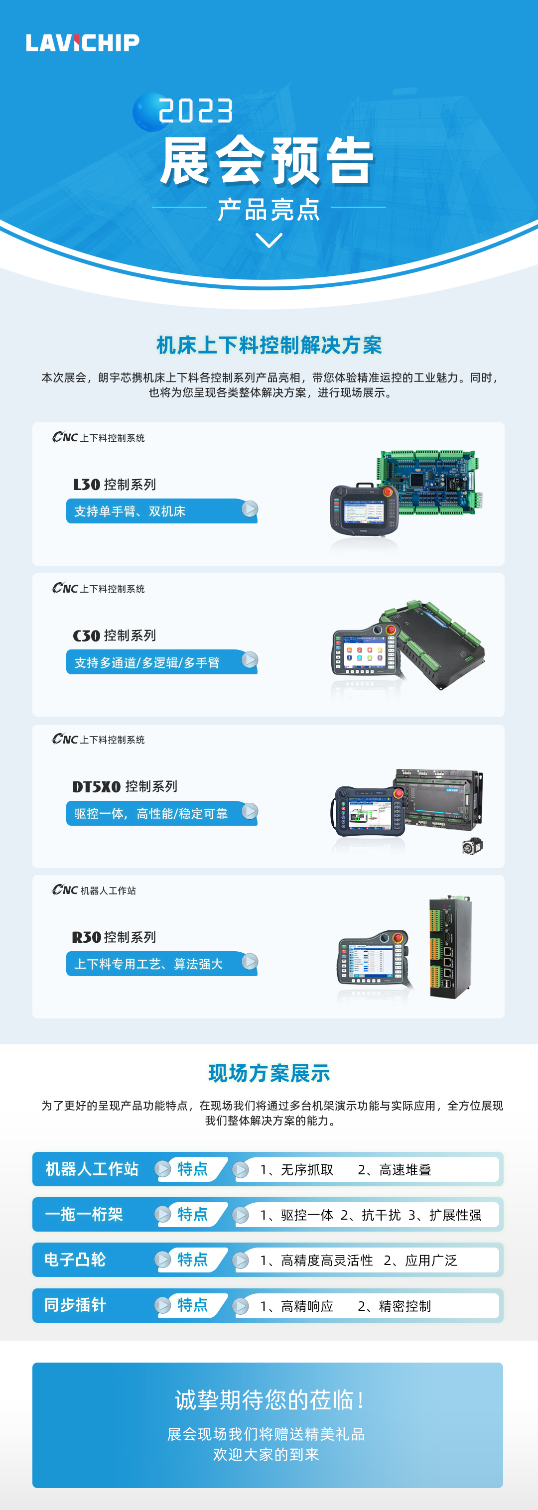 As a leading motion control solution provider in China, Lavichip will bring our stable and reliable machine tool loading and unloading control series products to the 2023 Yuhuan Machine Tool Exhibition, our booth is W2-T20, we are looking forward to your visit!