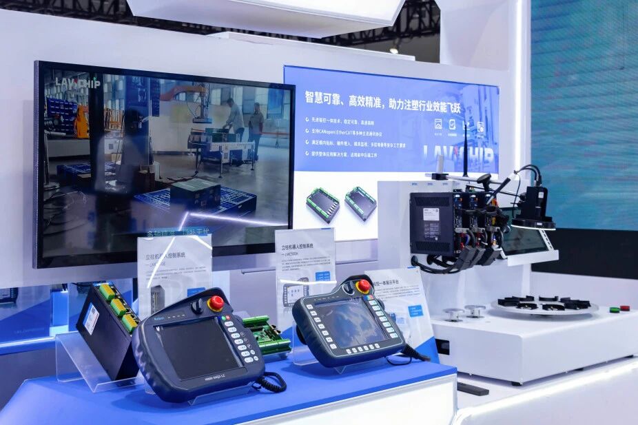 此外,朗宇芯还集中展示了旗下多品类工控产品,涵盖不同平台的示教器、多轴运动控制器、驱控一体机、伺服驱动器等核心产品,全面展现公司在运动控制领域的技术积累与创新能力。