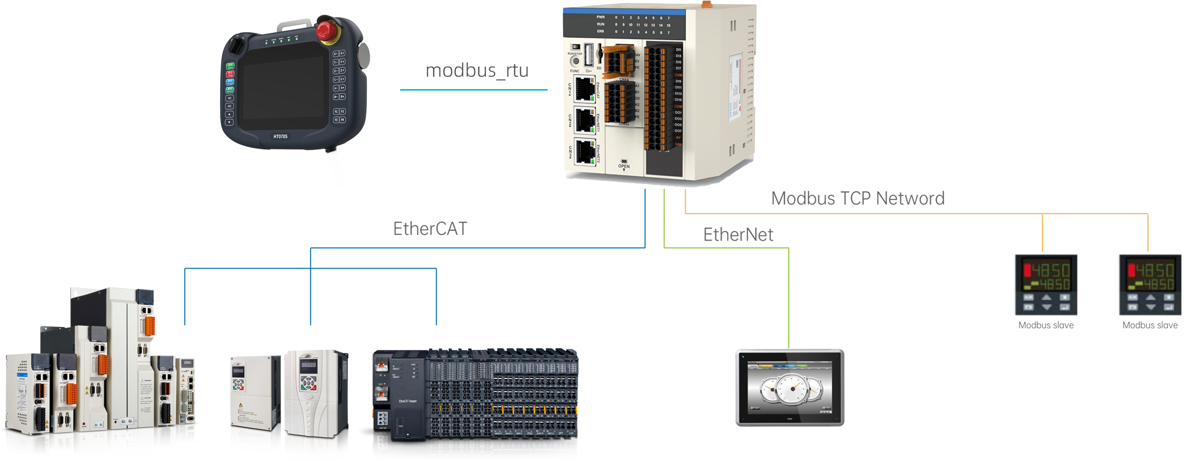 》支持第三方EtherCAT从站对接,配置灵活,适用于分布式和集中式控制场合; 》支持最大32轴EtherCAT总线运动控制,最大32个EtherCAT 扩展 IO模块; 》支持EtherNet、CANopen、RS485、RS232通讯; 》支持本体I/0,16输入,8输出; 》电子凸轮、电子齿轮、多轴插补功能; 》掉电检测,掉电存储;